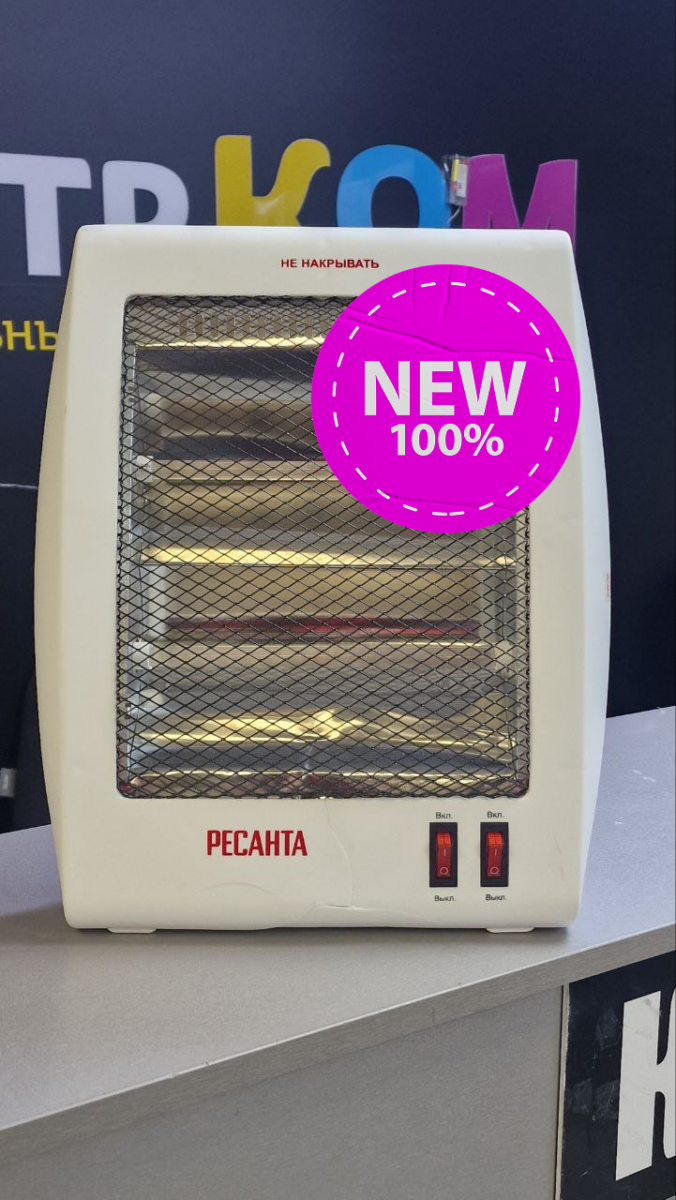 Новый. Гарантия 14 дней Скол и трещина пластика на корпусе Комплект без упаковки Мощность 800Вт На площадь 10-12кв.м Защита от опрокидывания
