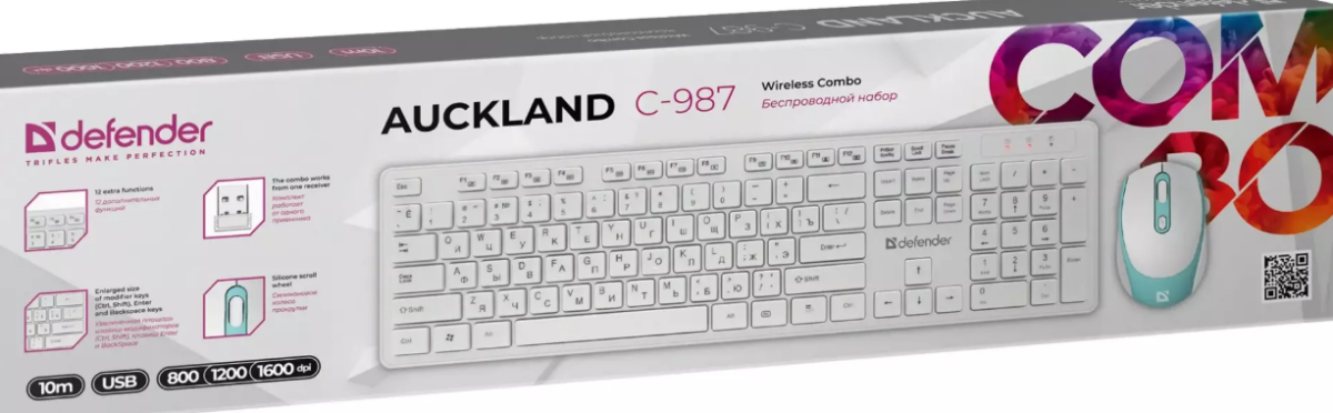 Клавиатура + мышь Defender Auckland C-987(беспроводная)1*AA Белый