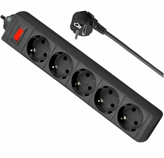Сетевой фильтр “Defender” ES5 5роз. 5м черный