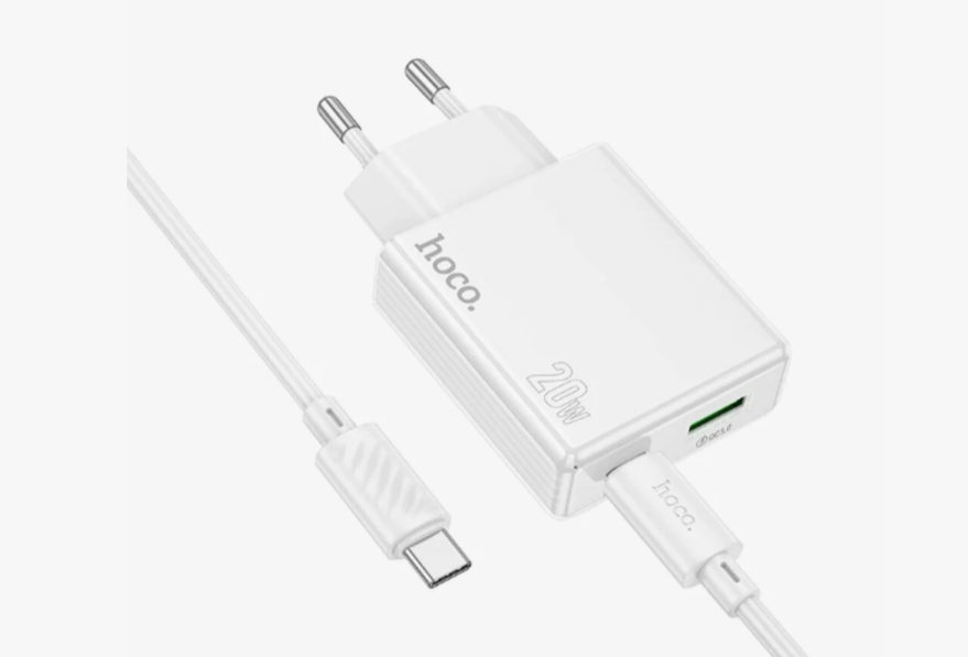 Зарядное устройство (сеть-220V) 1гн.USB+1гнType-C HOCO C142A+ кабельType/C-Тype/C QC3.0 20W Белый